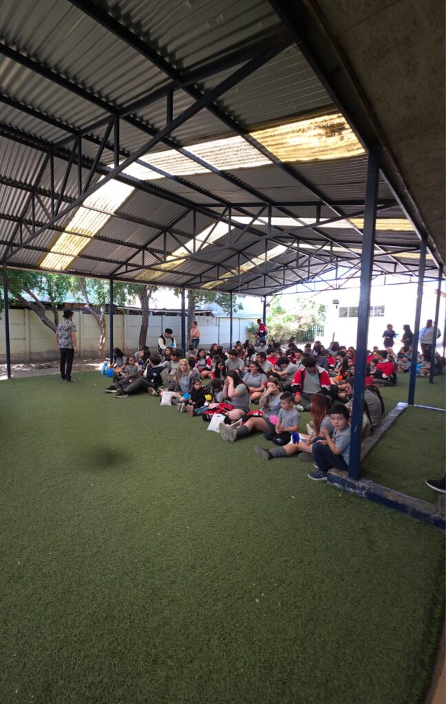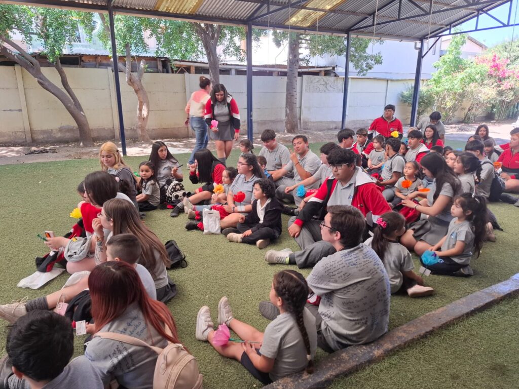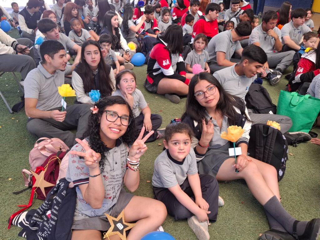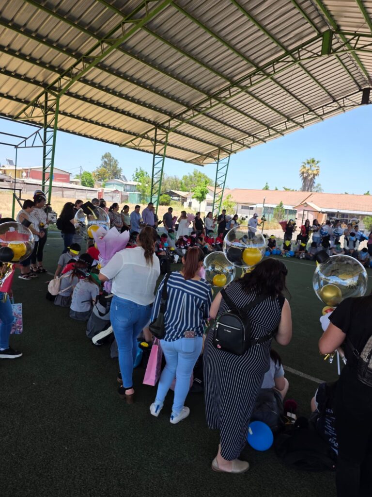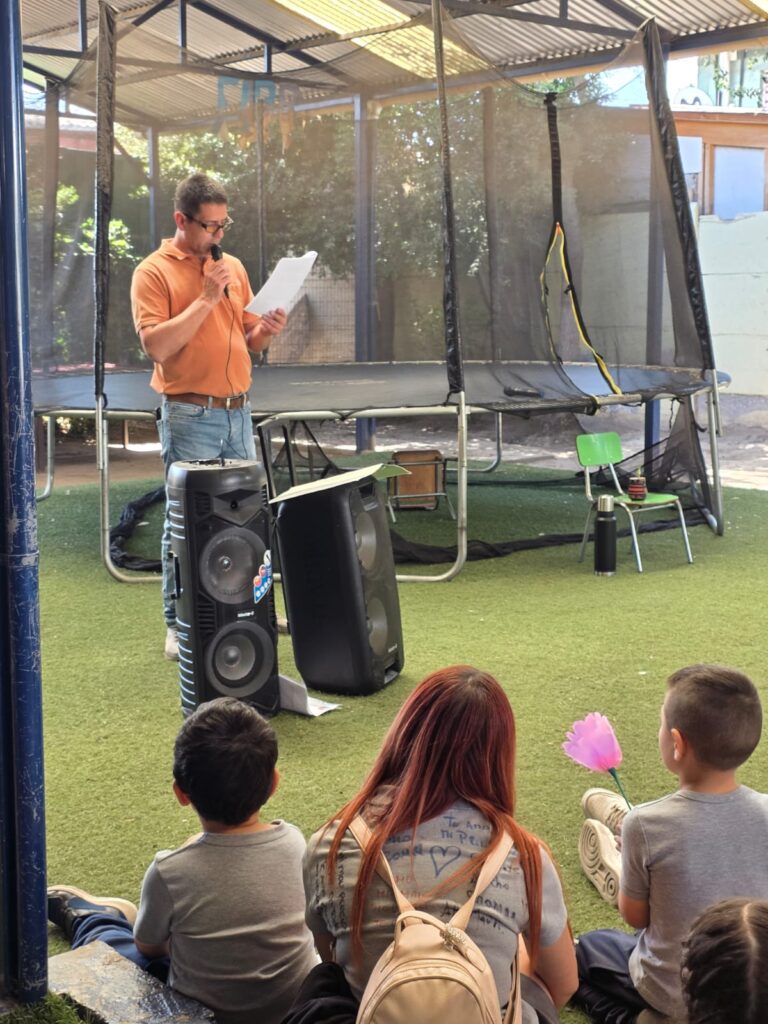 Luego continuando este recorrido tan emocionante, llegó uno de los momentos más tiernos, que se realizó en el patio del Prekínder, ahí los estudiantes más pequeños del establecimiento, les dieron la bienvenida junto a los profesores Claudio Araya, Jonathan Morales y Rodrigo Valenzuela, quienes narraron, junto a los niños, un cuento que relata la historia de estos cuartos medios que hoy egresan, esta historia emotiva fue creada por la Miss de Inglés Joselyn García, especialmente seleccionada y dirigidos a todos los de la Generación 2025, con temas sobre crecer, soñar y dejar huellas. Fue una escena llena ternura, escuchando atentamente y compartiendo con sus compañeros más pequeños del establecimiento.